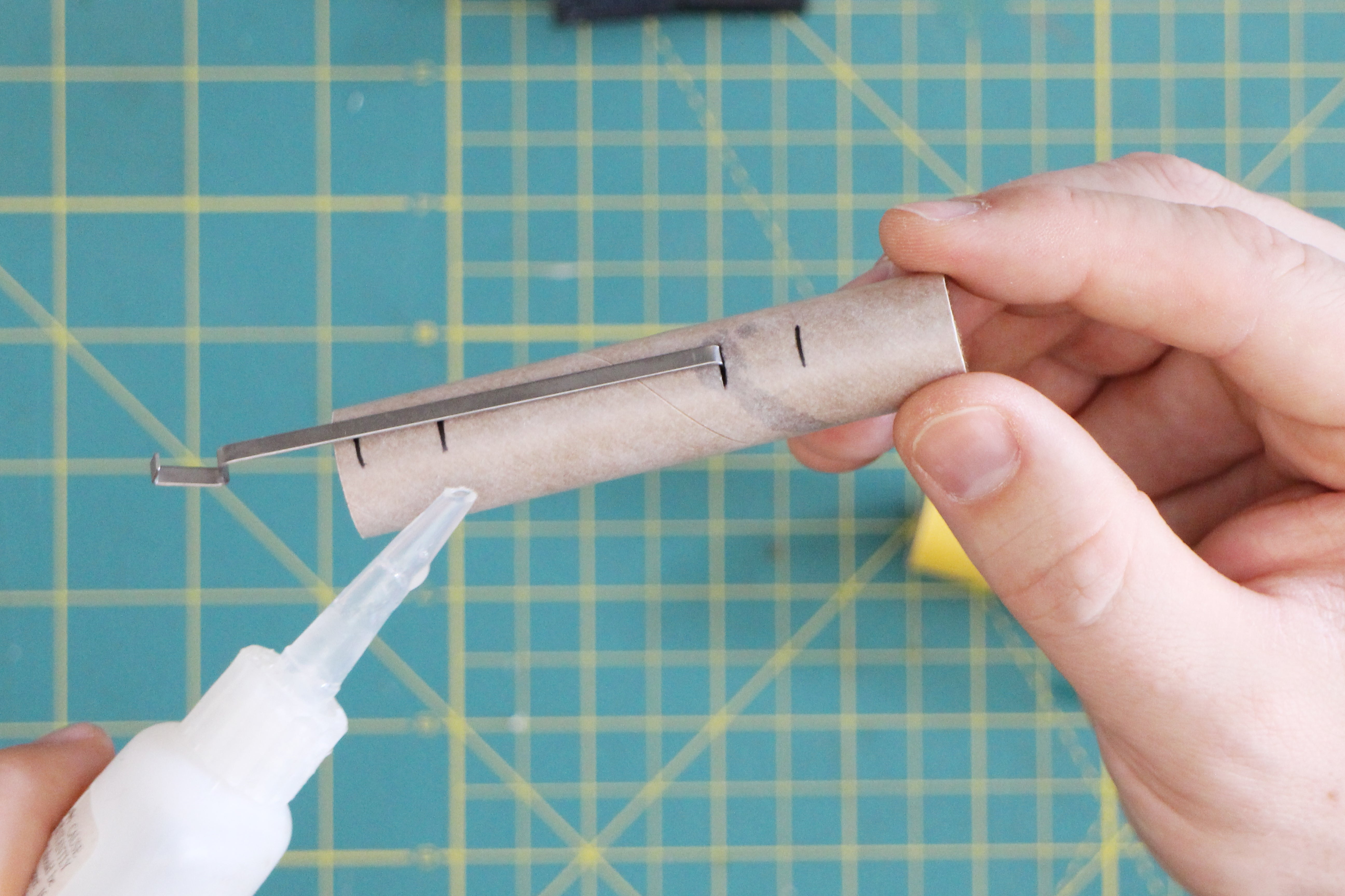 next, add a small dab of glue to just above the 4th marking (67mm from our reference end).