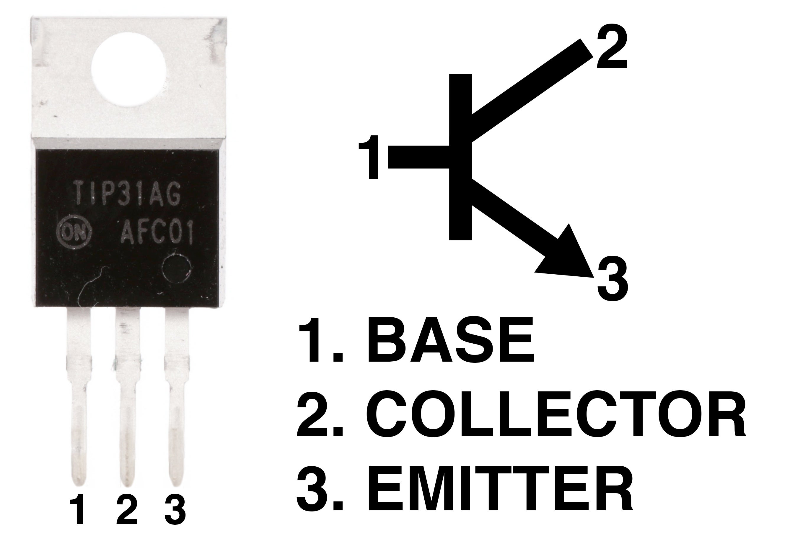 To figure out which pin was which, I used the following pin diagram for the TIP31 and TIP42 transistors.