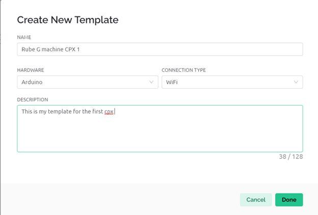 4. As you'll need 2 Circuit Playground Express (CPX) boards for this project, create another template and modify the name and description (we named it "Rube G Machine CPX 2").