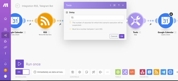 d. Include the Telegram module and follow Step 5 to set it up.
