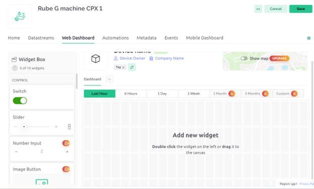 - In the "Rube G Machine CPX 2" template, use a label widget for "Connect" and a switch widget for "TV_Remote".