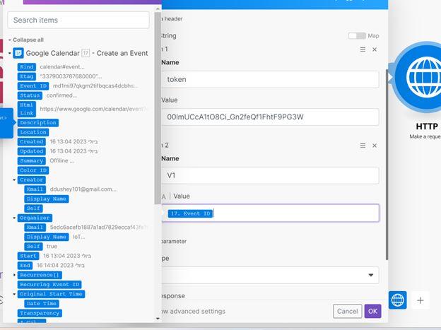 - For the HTTP request, we want to send the calendar ID to the second CPX board so it has the ability to edit the calendar event we created.