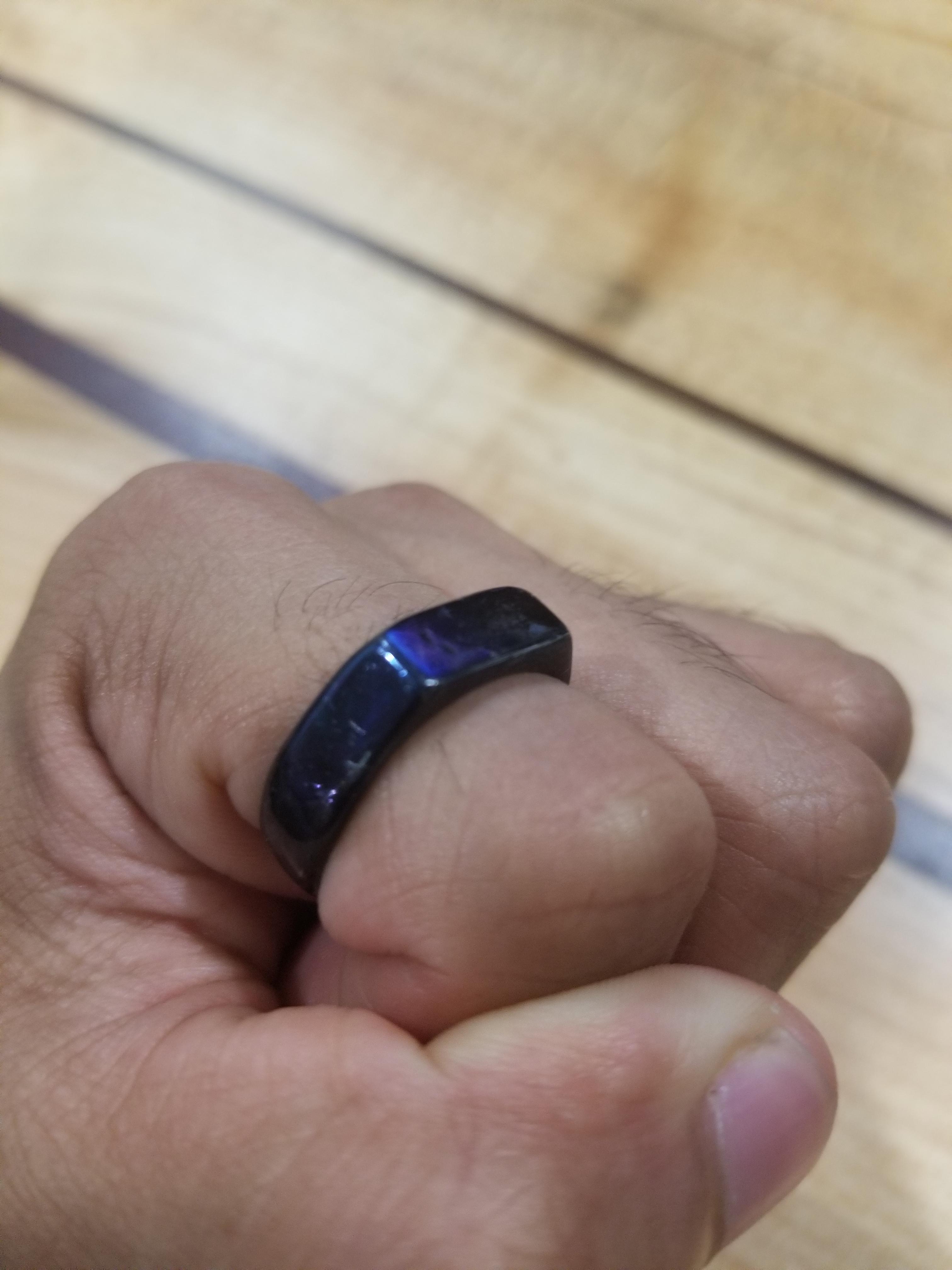 I used a cooking torch to temper one ring and get an even “midnight blue” shade all over.