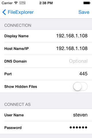 - Input the IP address (you can find it in the top left corner of Settings app in Prota Space) and leave the DNS Domain field blank.