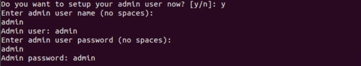 Setup your admin account, I chose admin/admin temporarily to avoid any interruption: