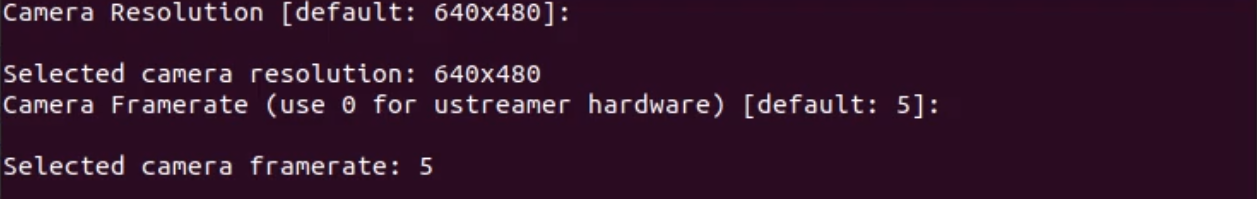 Press enter to select the next available port number for access to the camera. Make a note of your port number, then enter your camera resolution in the same format as depicted (640x480, 1280x720, 1920x1080 etc) and your frame rate.