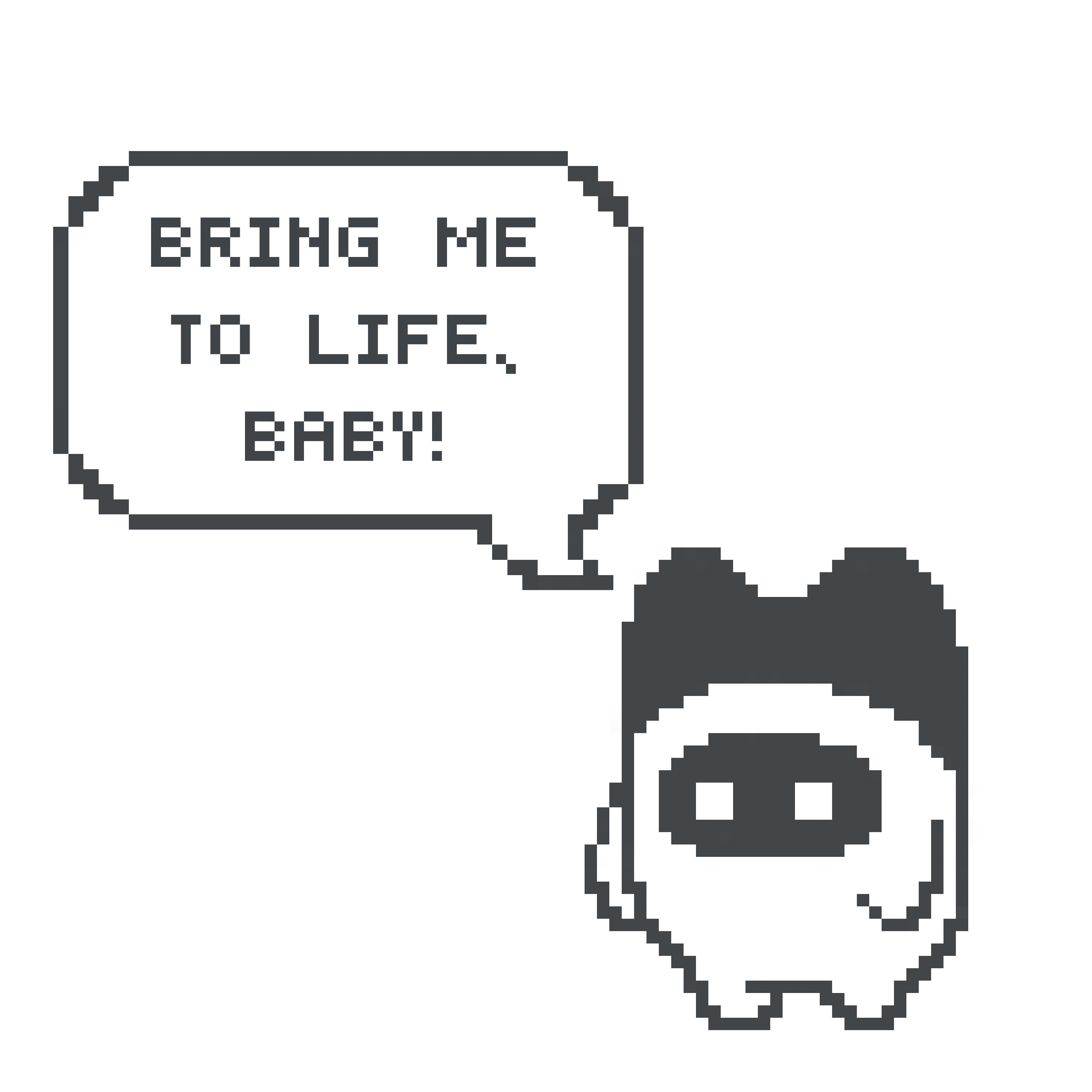 Minimal, deadpan, and just the right amount of cute — think Baymax meets pixel art.