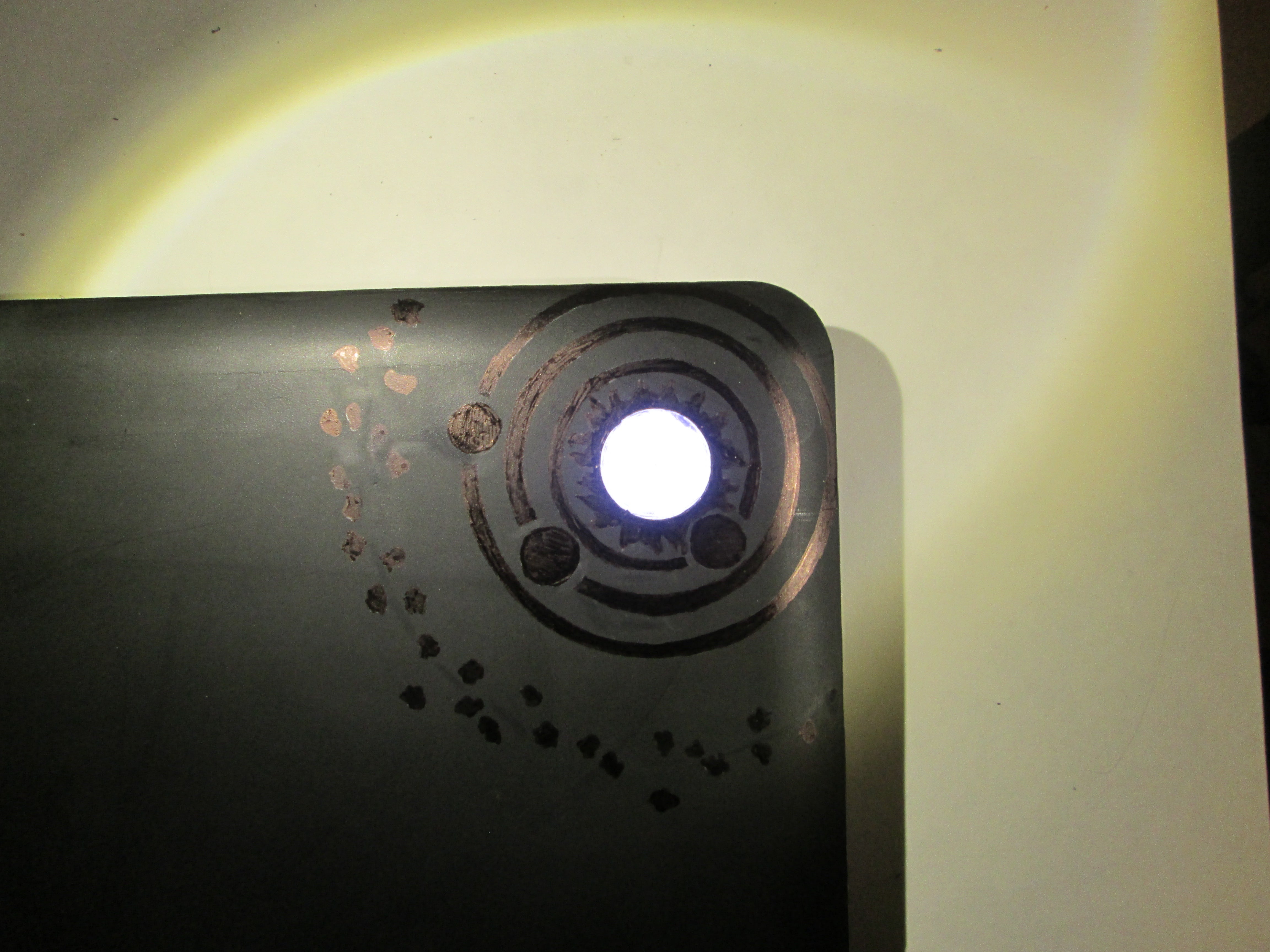 And here's what it looks like lit up. Sorry the quality isn't perfect, but getting the lighting right to show both the subtle Sharpie detail as well as the glow was rather tough.