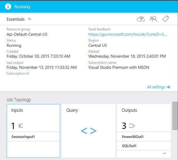 Open the Stream Analytics Job in the Azure Protal (https://portal.azure.com)
