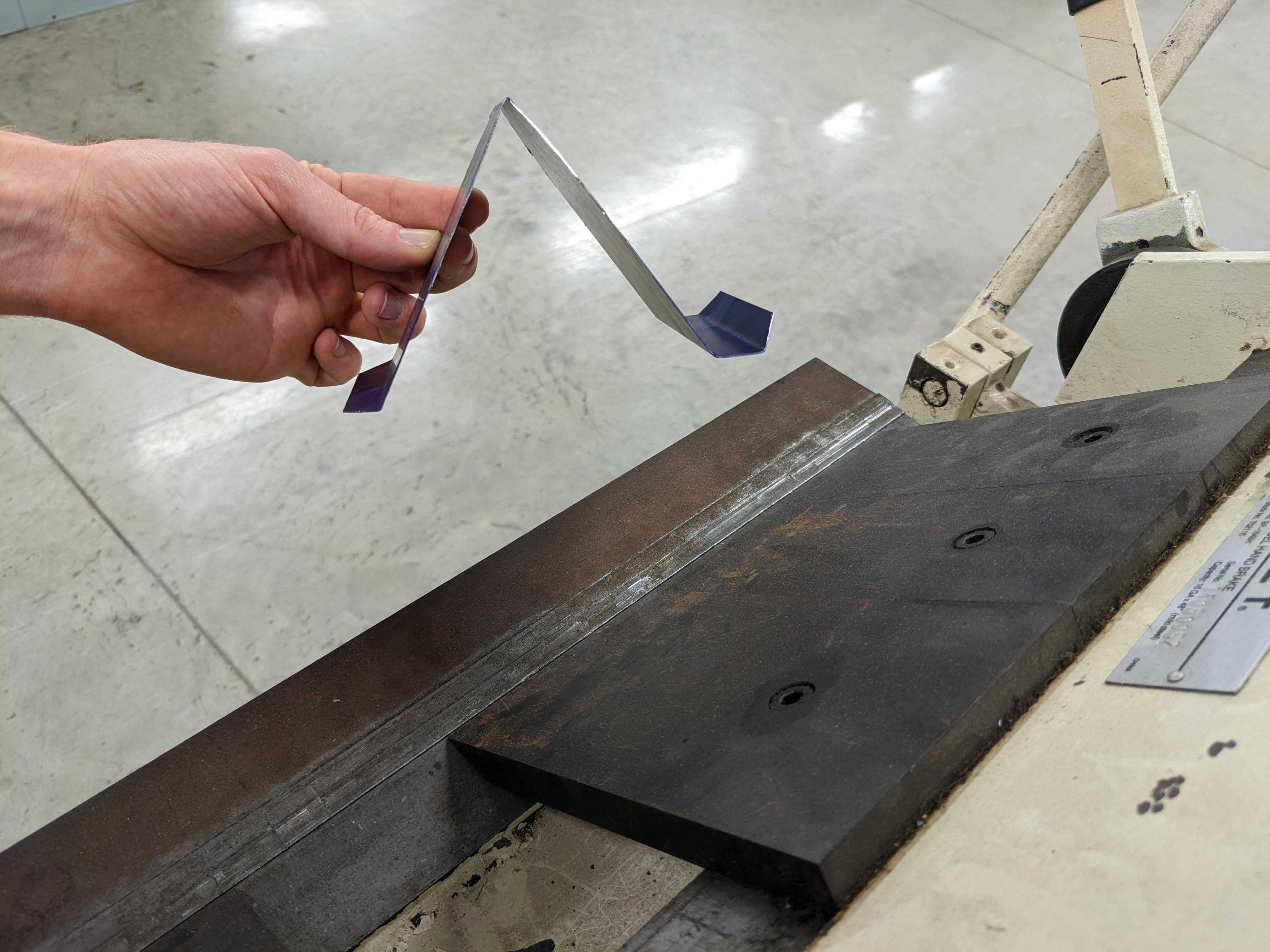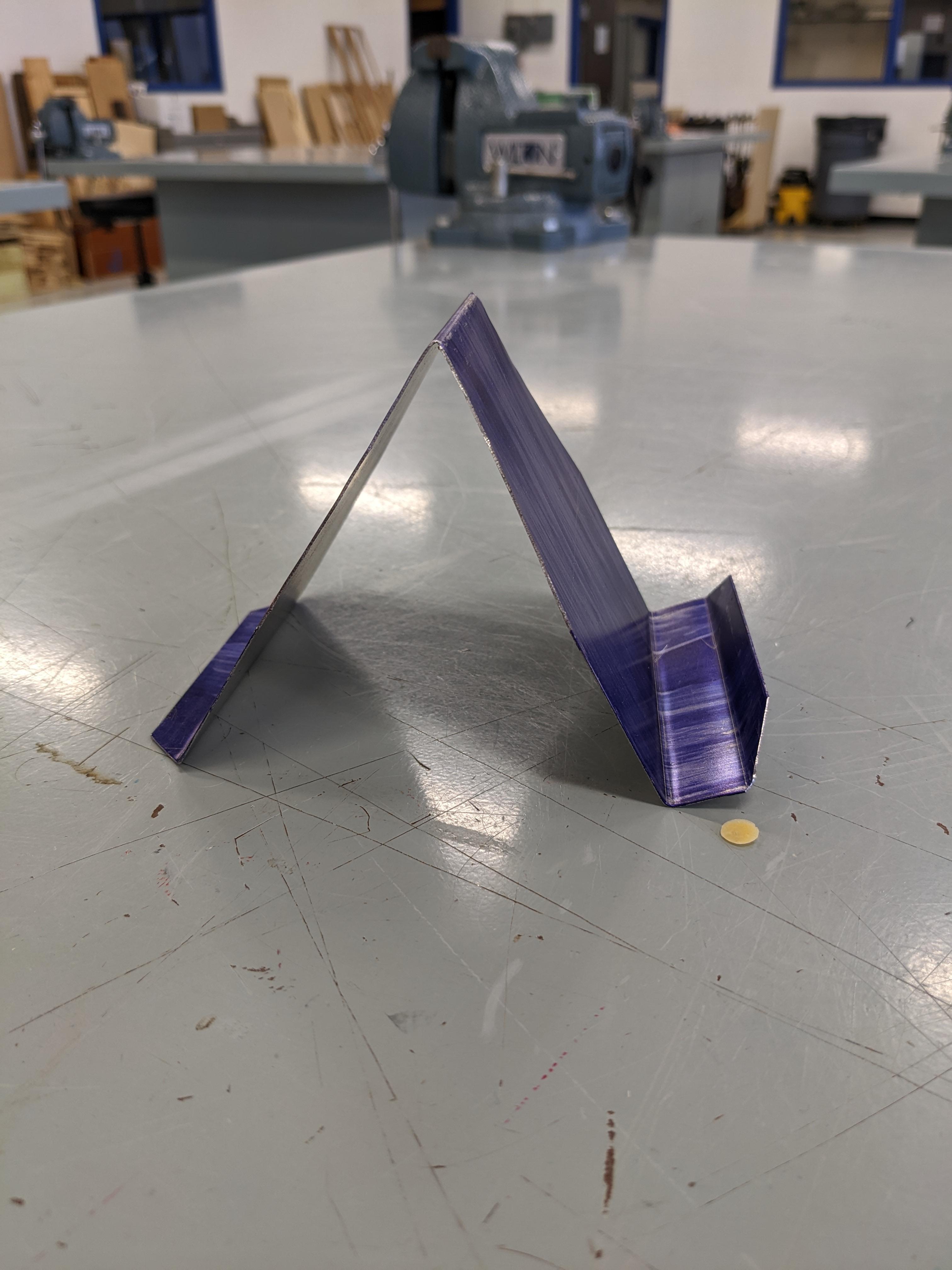 To form your flat metal into a phone stand you'll need to follow the right order of operations for your bends. I have my students reference their plans and annotate their bend lines with the letters A, B, C, D.