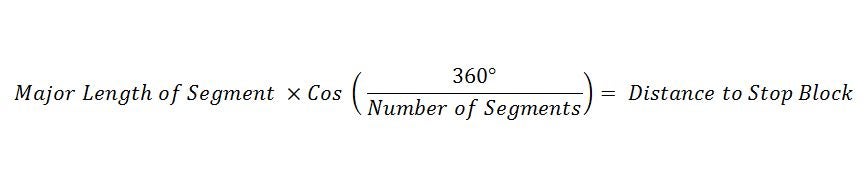 To calculate the distance of your stop block, you must take the major length of your segment and multiply it by the cosine of the angle of your wedge.