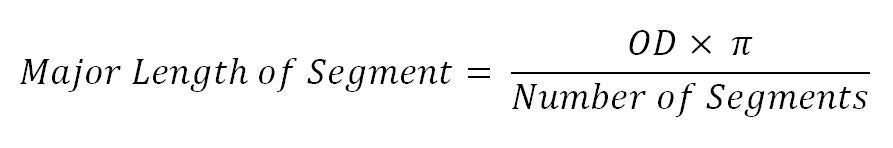 From the sketch we can see that our OD is 7.5 inches and our ID is 5.5 inches. To calculate the length needed on the exterior of each segment take the OD multiply it by Pi and divide that by the number of segments in the ring.
