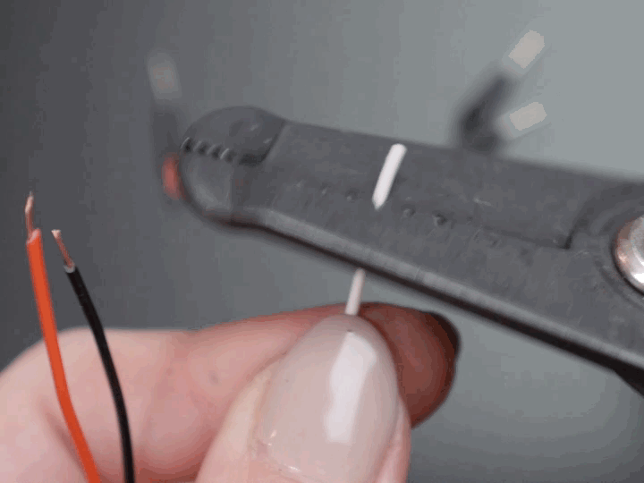 Prep three of your breadboard wires by cutting off the connectors at one end and stripping the ends to expose the bare strands of wire. Twist the strands of each wire to keep them together, then heat up the wire with your soldering iron and apply a small amount of solder. Remove the solder before removing the iron, to give the molten solder one last moment to settle in. Repeat to tin your other two wires, then set them aside.