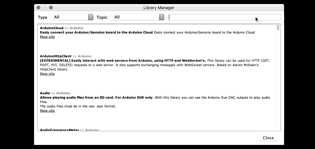 In your Arduino software, navigate to Sketch -> Include Library -> Manage Libraries...