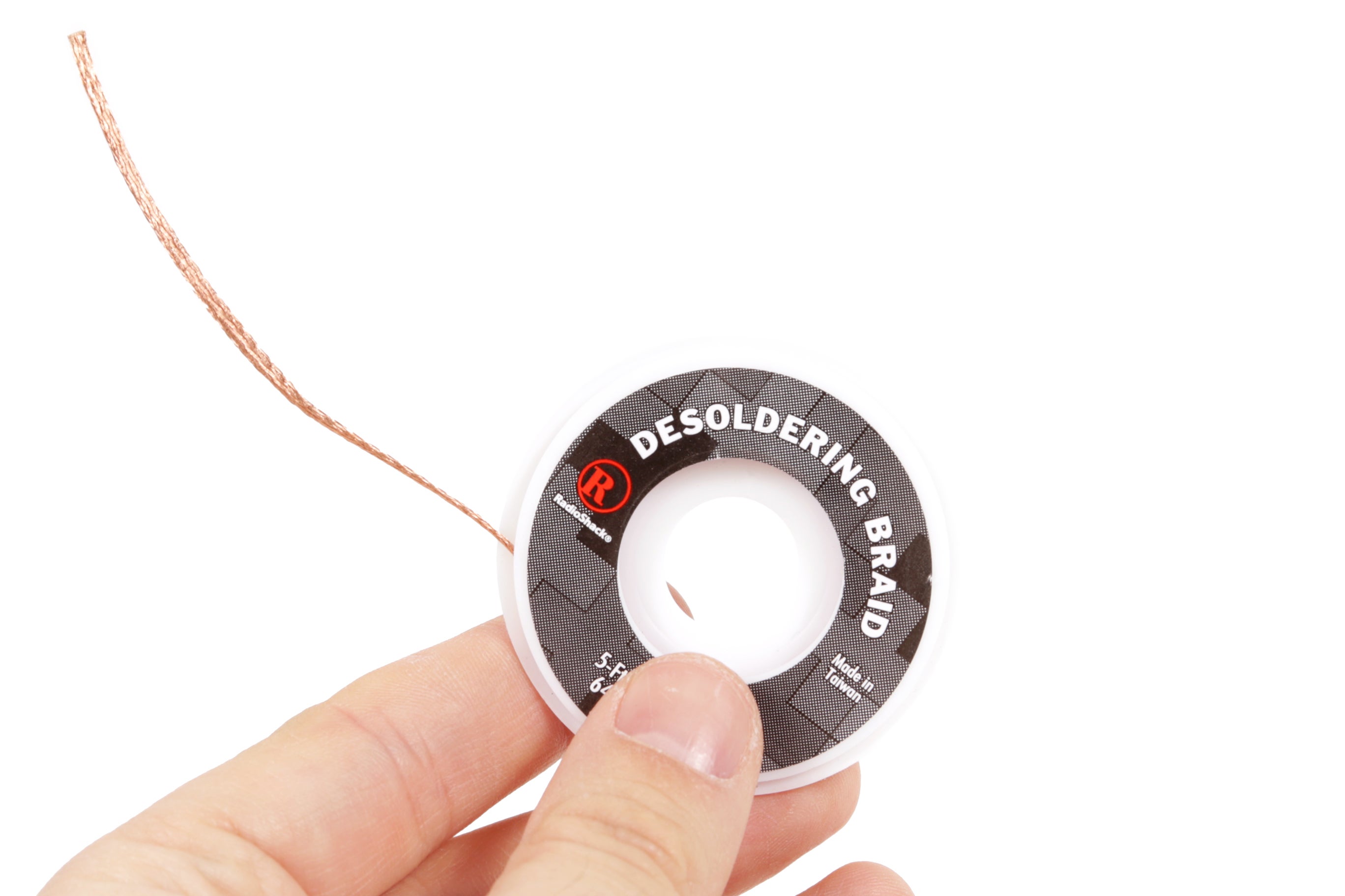 While many mistakes can be fixed by reheating the solder, or adding a little bit more, more often than not, you will need to remove some solder. There are a number of techniques for doing this, but I have found the most reliable is desoldering braid. While it might seem complicated, desoldering braid is basically a mesh of very thin copper wire that wicks up melted solder.