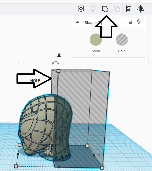 Next we make the Hole for the magnet. My magnet is 15mm in diameter, so Drag out a cylinder "Hole" and set it to the dimensions of the magnet, and rotate it 90 degrees. Then using the up arrow move the magnet to the back of the head.