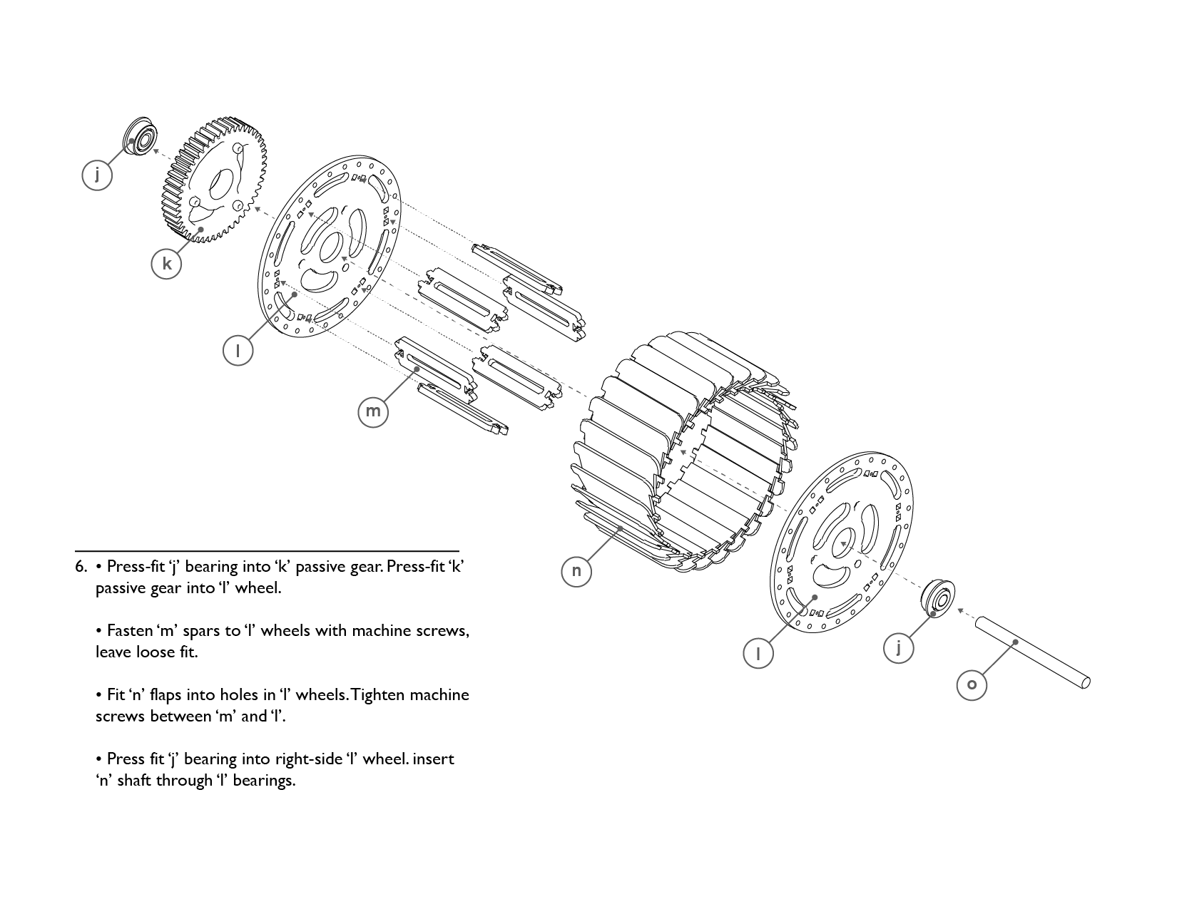 The hardest part is inserting the flaps. The trick is to assemble the wheel so that the screws and nuts are very loose- just barely held together. That way you can click the flaps into place one-by-one, then tighten all the screws once the flaps are in.