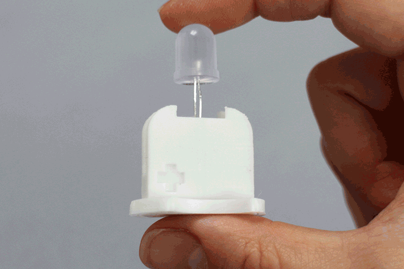 Gently push the LED all the way in until the bottom of the plastic 'bulb' sits flush with the top of the holder.