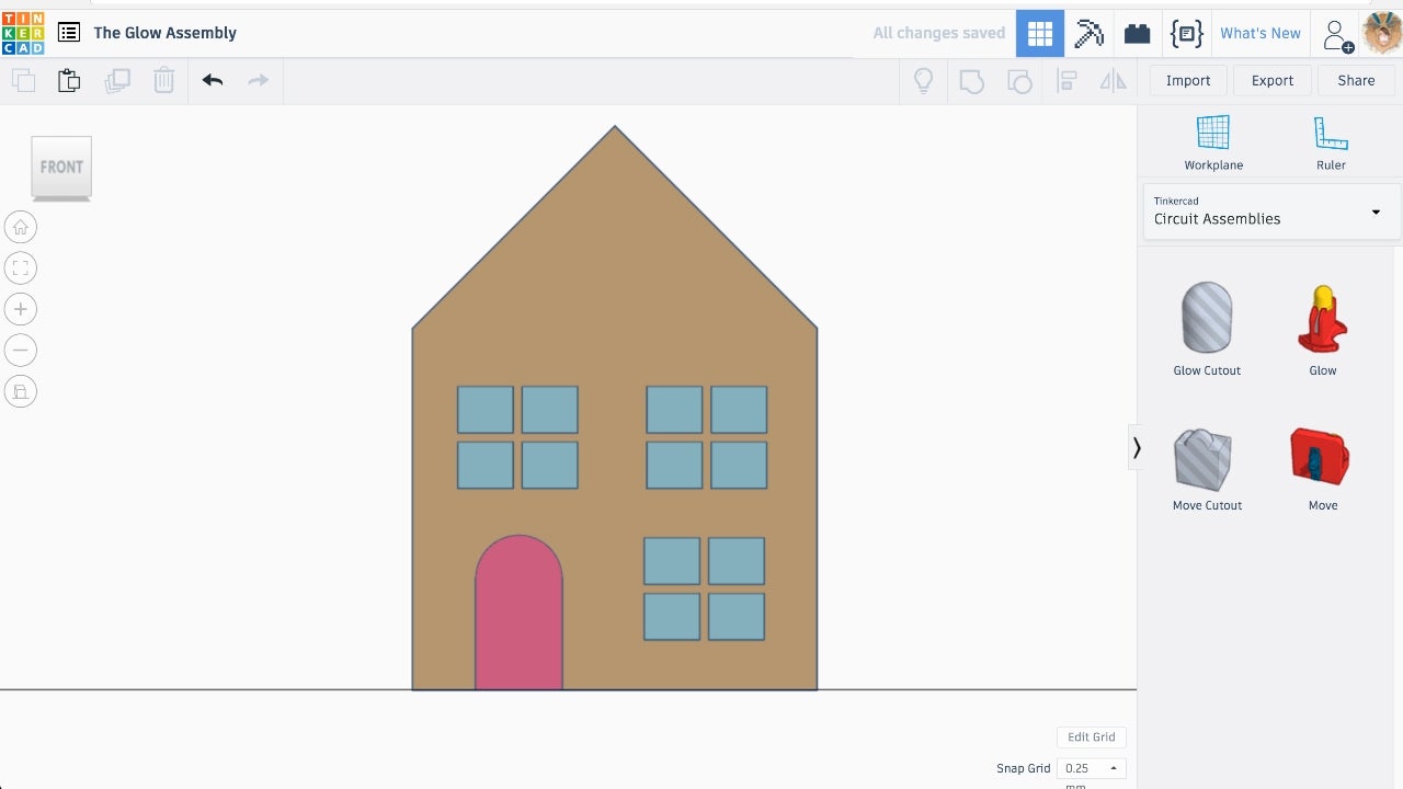 This is a choose your own adventure as far as the final design goes! Either download and import the three house STL files I've provided above (House, Door, & Window), OR drag any other shape with a flat bottom from the shape menu onto the workplane. Whatever you choose, this is the shape that we will be adding the Glow Assembly to.