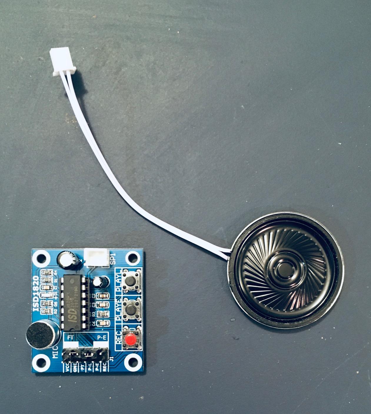 I decided that I want to add a sound effect to the project so I purchased a cheap solid state ISD1820 based recording and playback module.