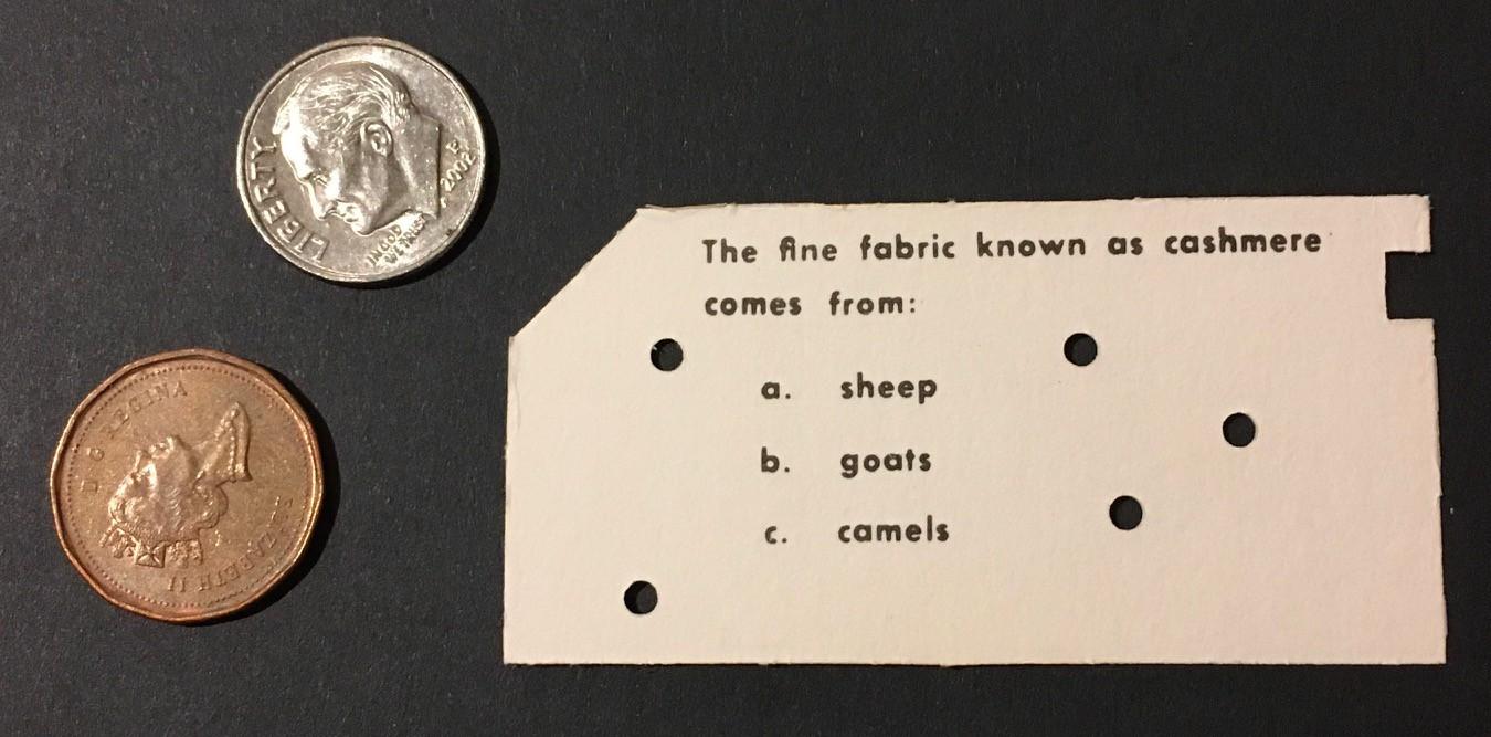 Trivia cards for the original Think-a-Tron were pretty small at just 1 1/4 x 2 1/2 inches.