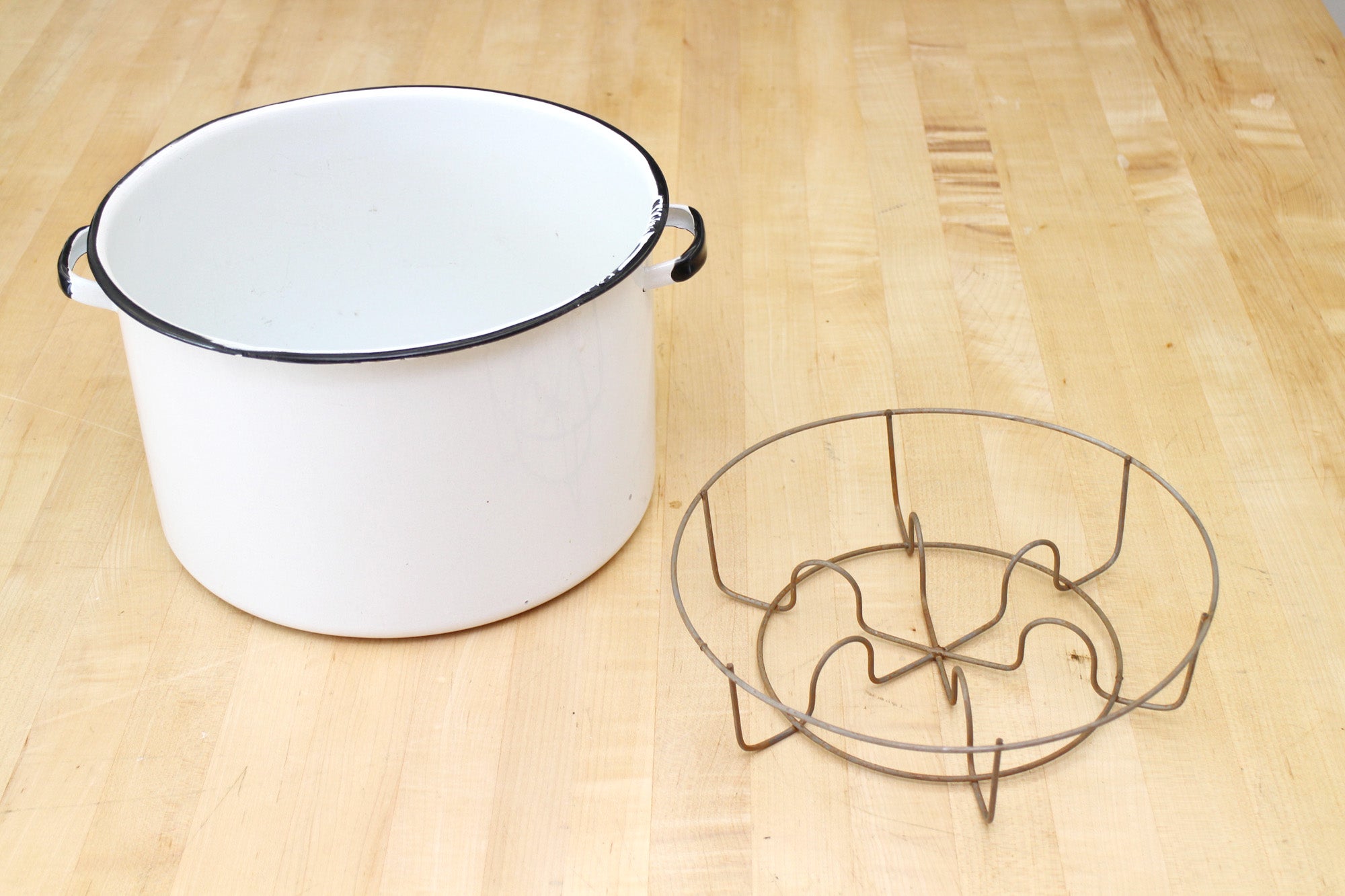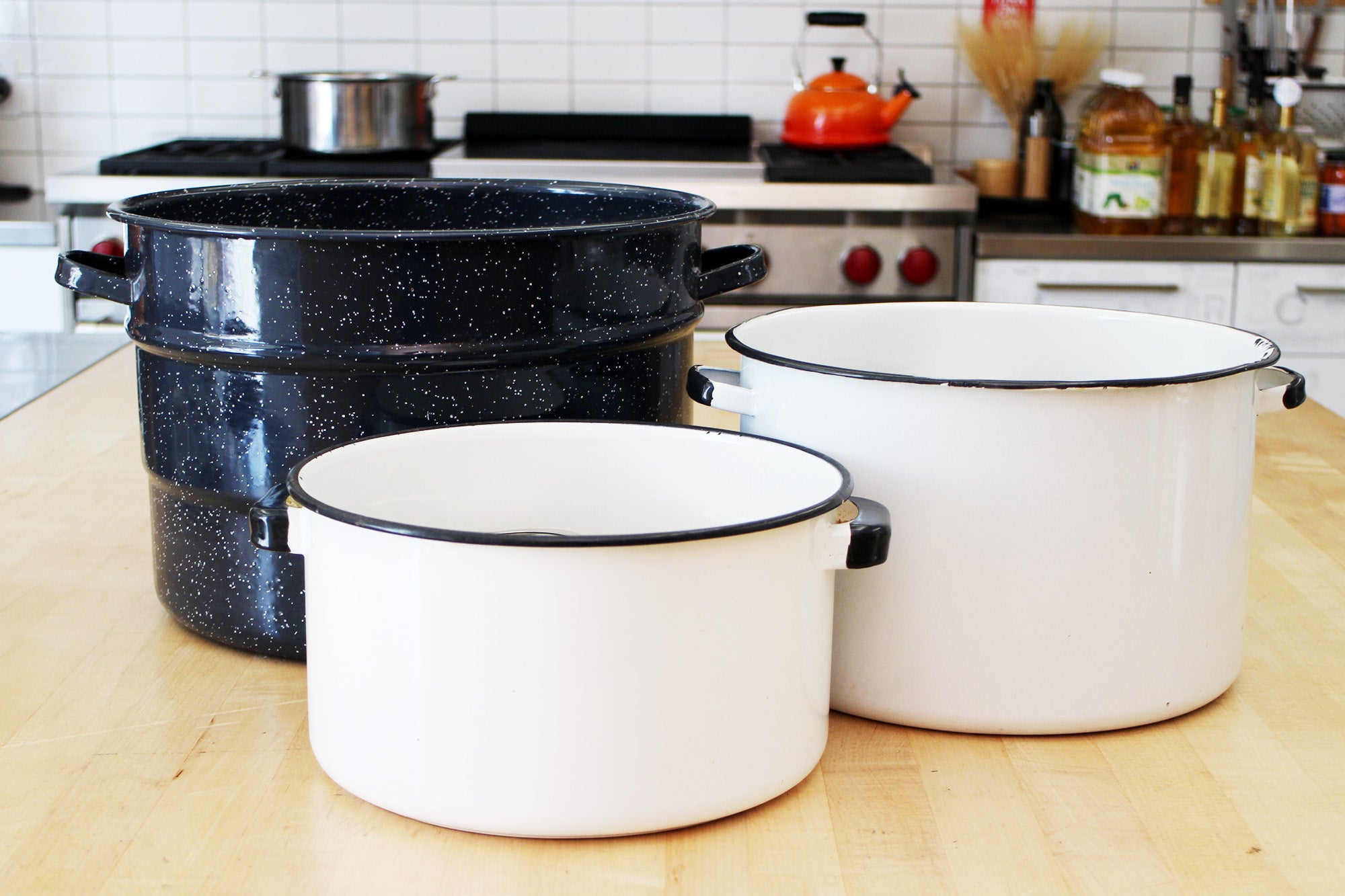 I've provided purchase links for all the items that are either exactly the same as the ones I use, or the closest thing available to the more senior items I use that are no longer available new, like my white enamel pots and vintage jar lifter.