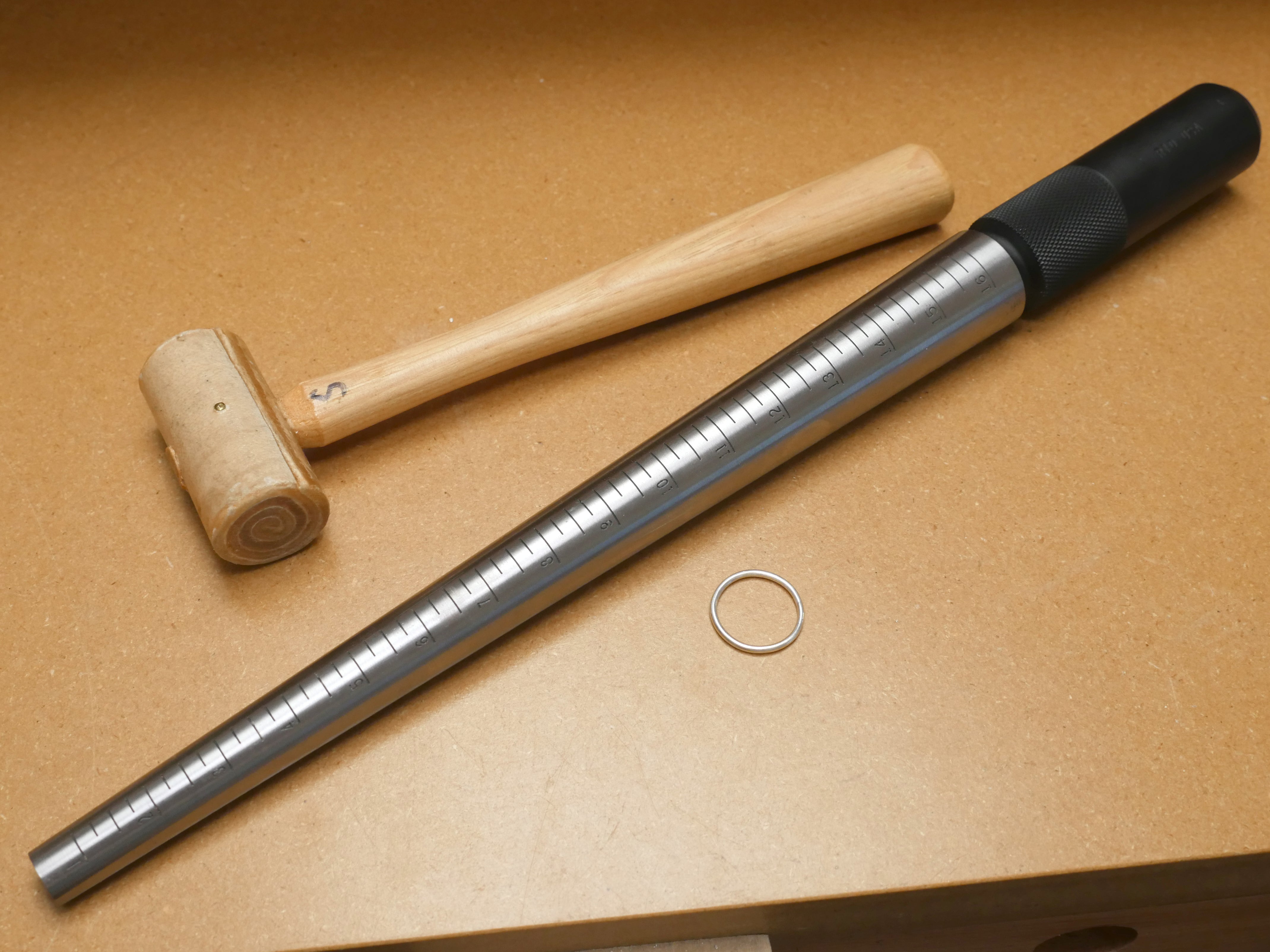 To form perfect circles, loops, and other rounded shapes, you'll use steel mandrels. The small step mandrels pictured on the left are useful for small wire projects, and the large ring mandrel on the right will be used to shape your soldered silver rings.