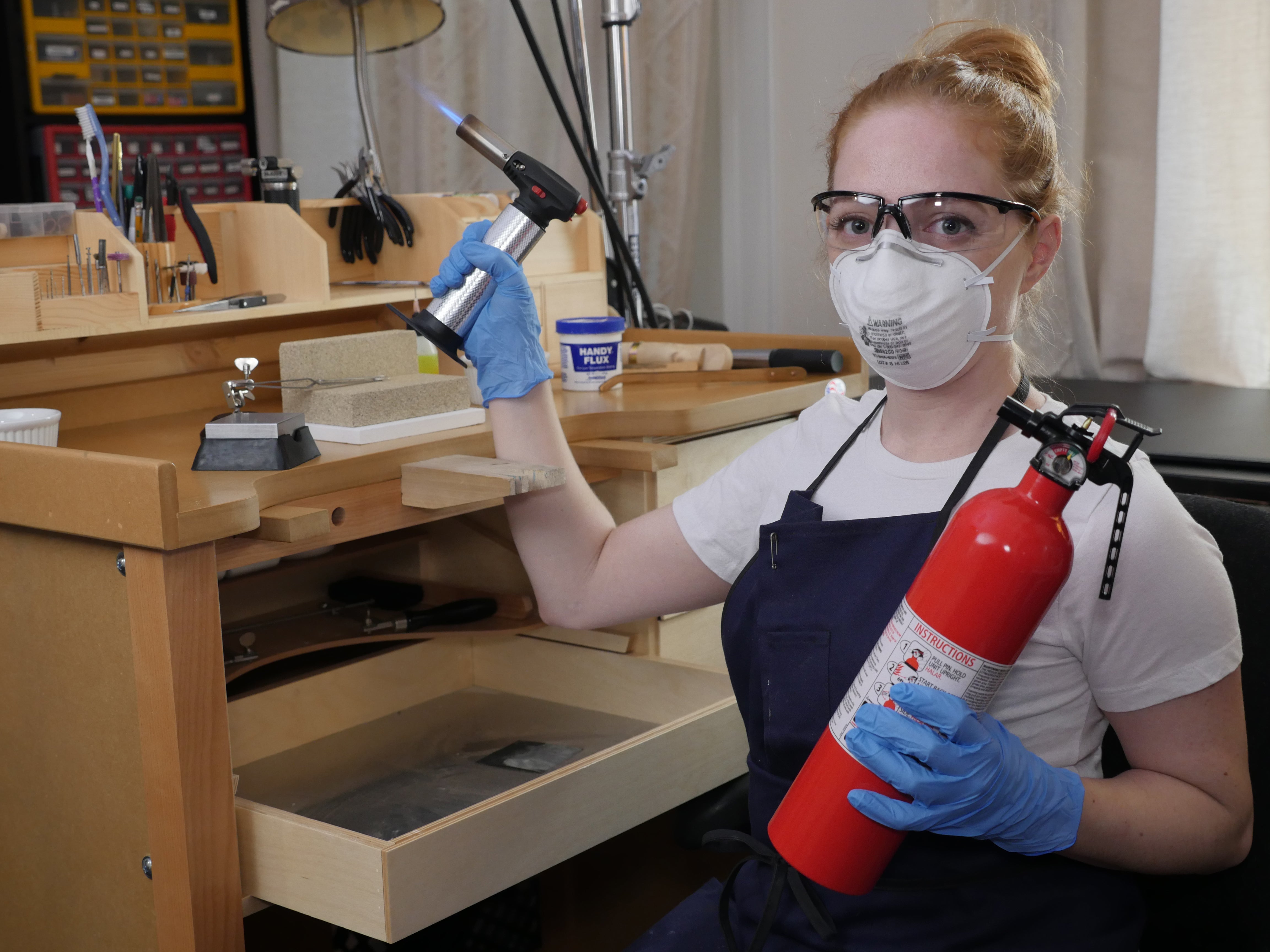 Many home goods stores with kitchen supplies carry household-type butane torches, which while great for making creme brulee, are also perfectly suited to the small silver wire project in this class. Store the torch and fuel in a safe place, protected from extreme temperature, and be sure to keep a fire extinguisher nearby. Professional jewelry workshops use oxygen/acetylene torches that are capable of heating larger projects to higher temperatures, which are also much more dangerous.