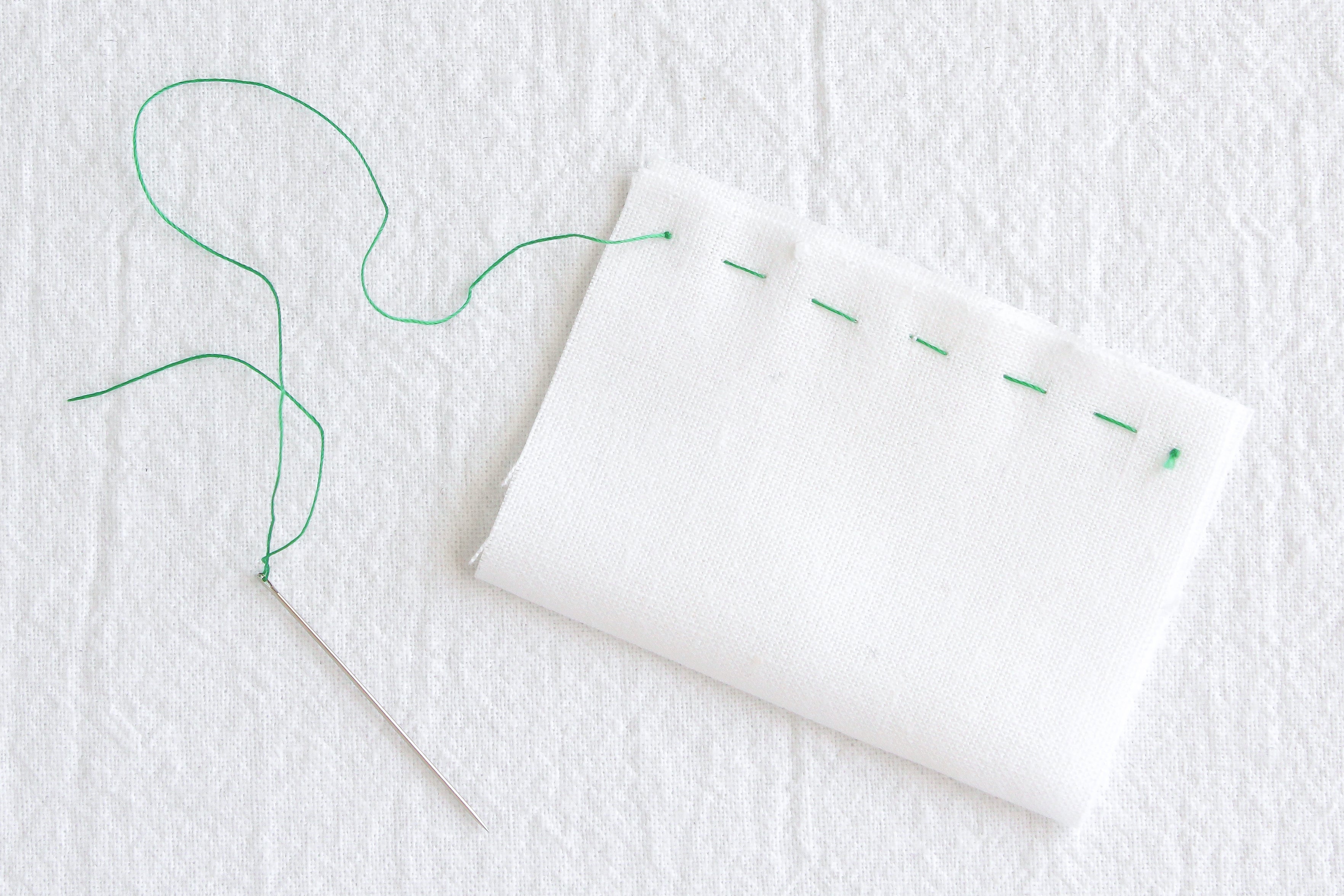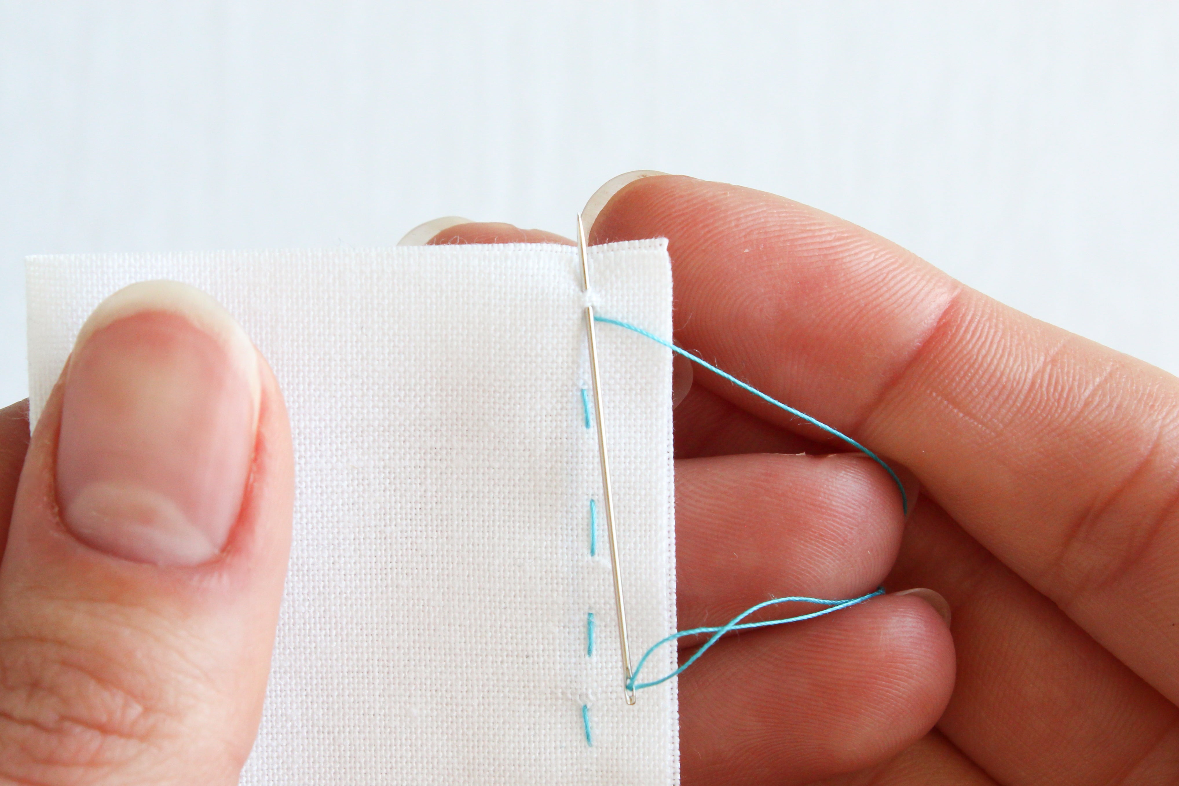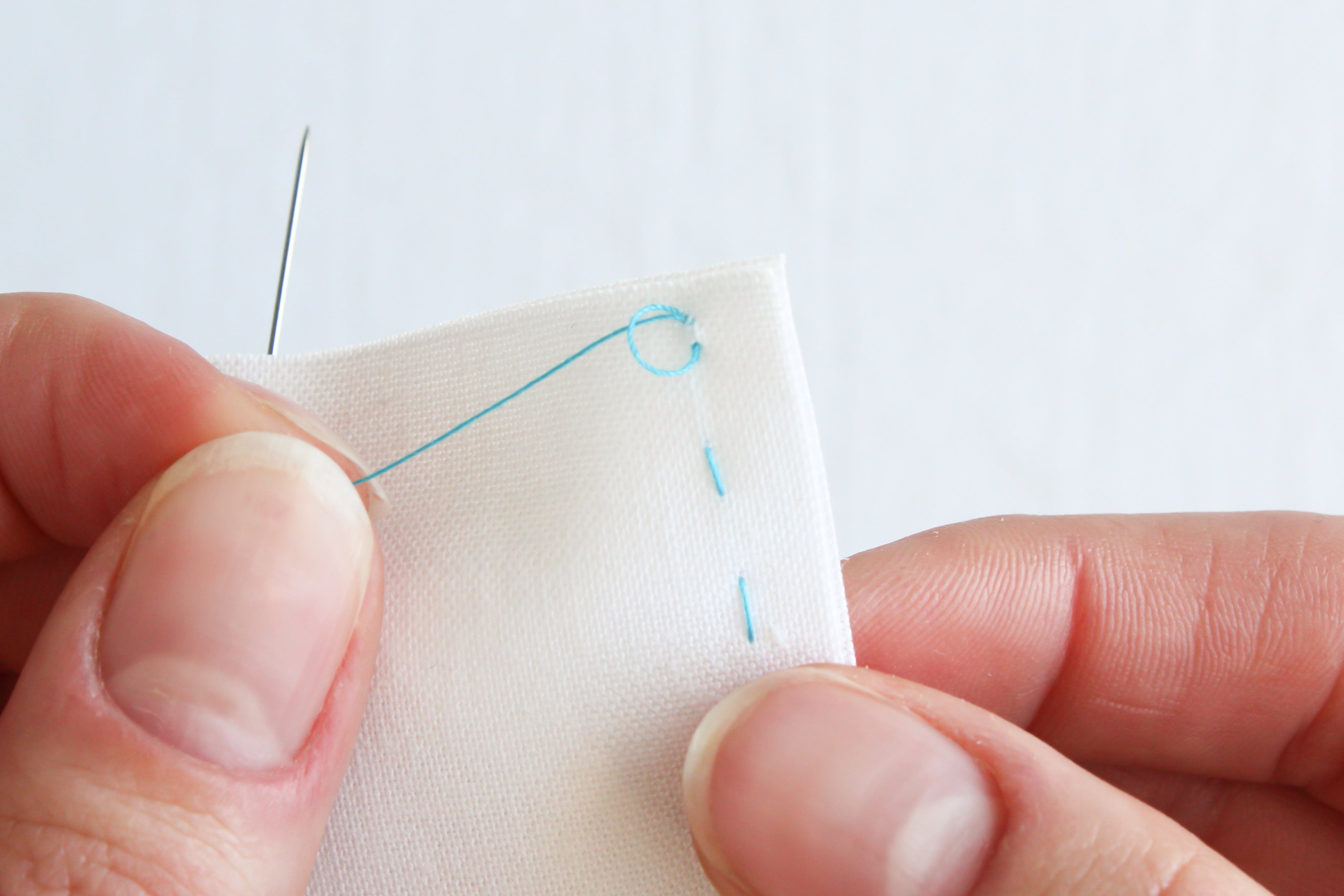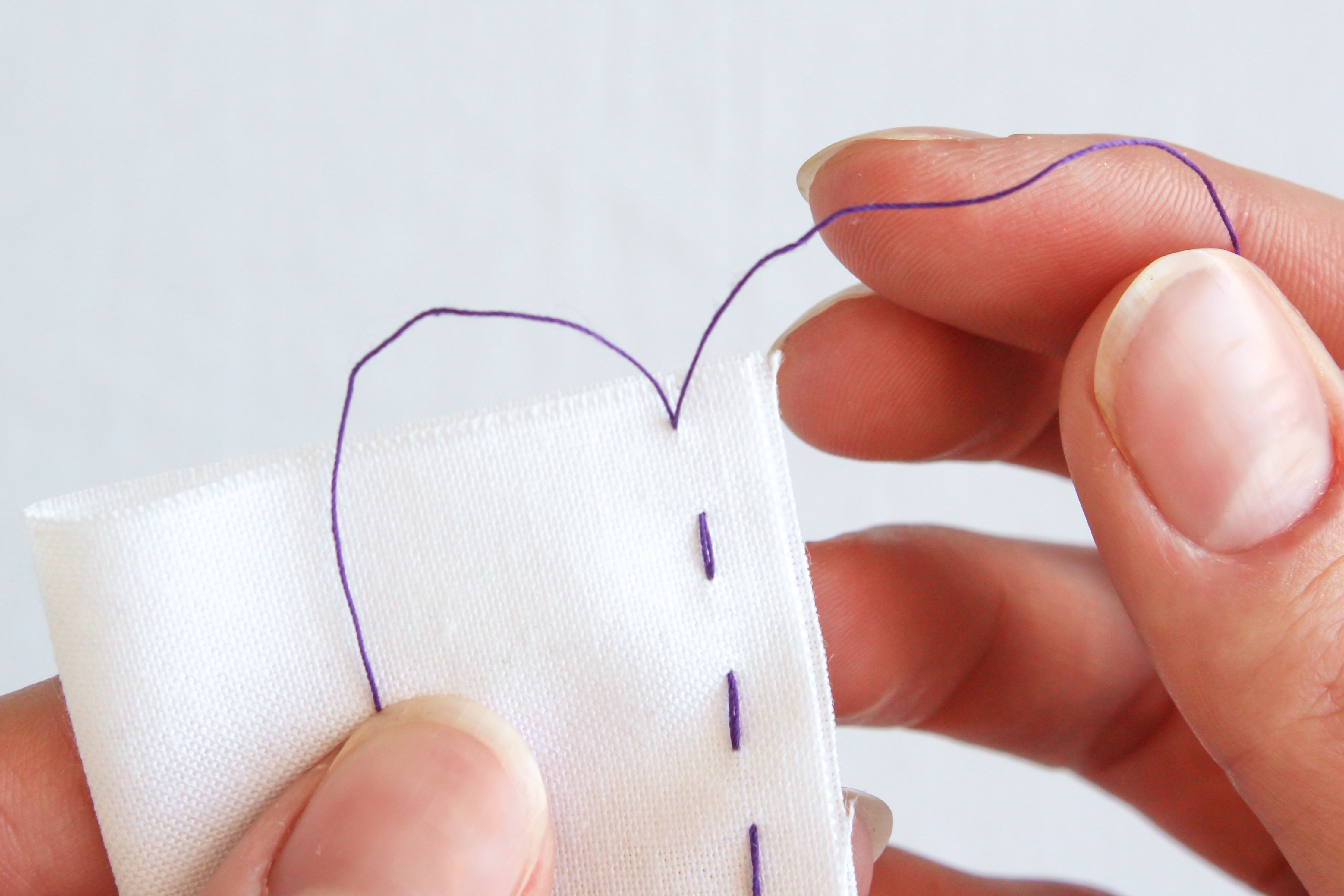 When you knot, tighten the first knot right down to the fabric but no further! If you pull the first knot too hard you can make the stitches too tight which will lead to the fabric puckering. After the first knot, you're safe to tie really tight knots!