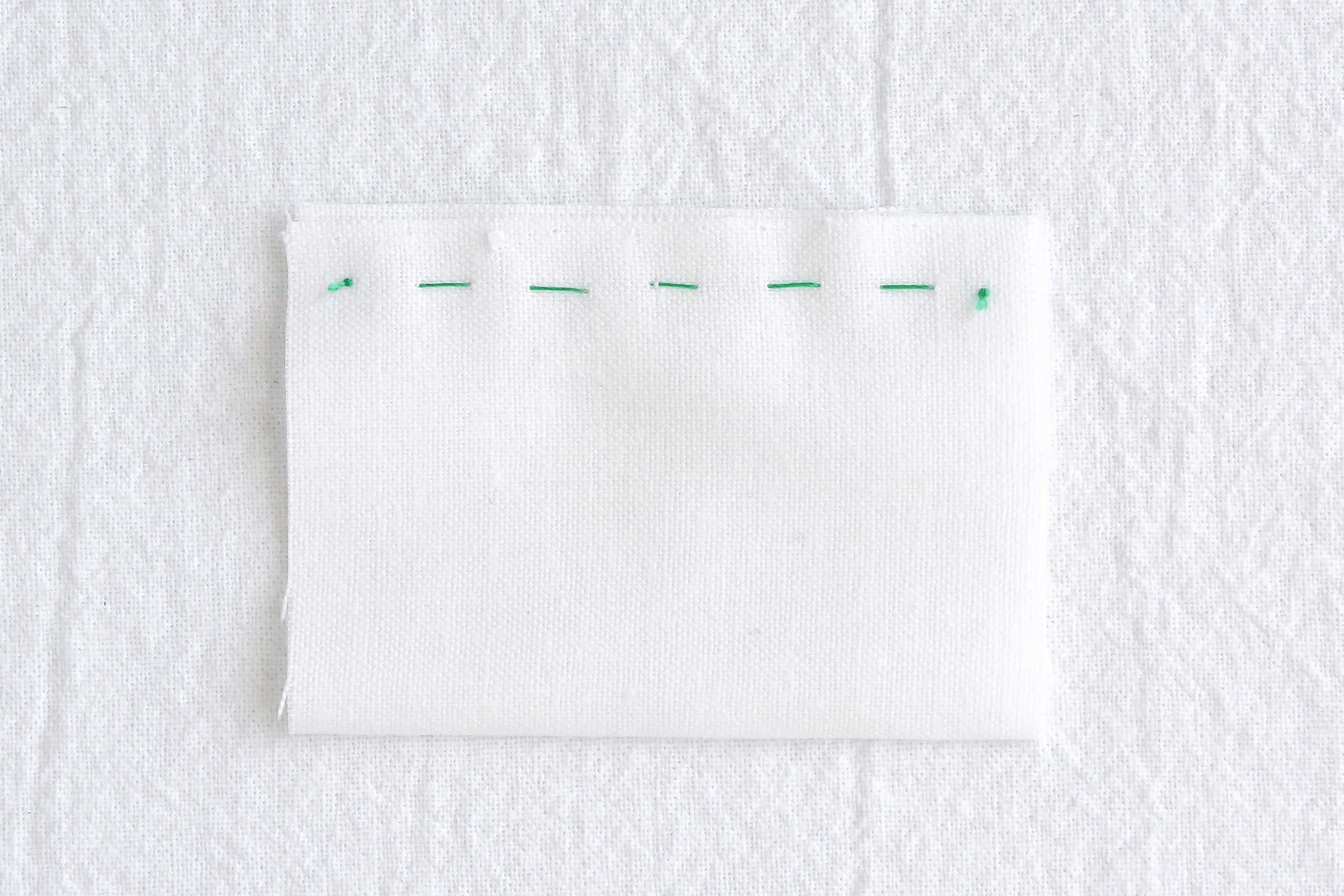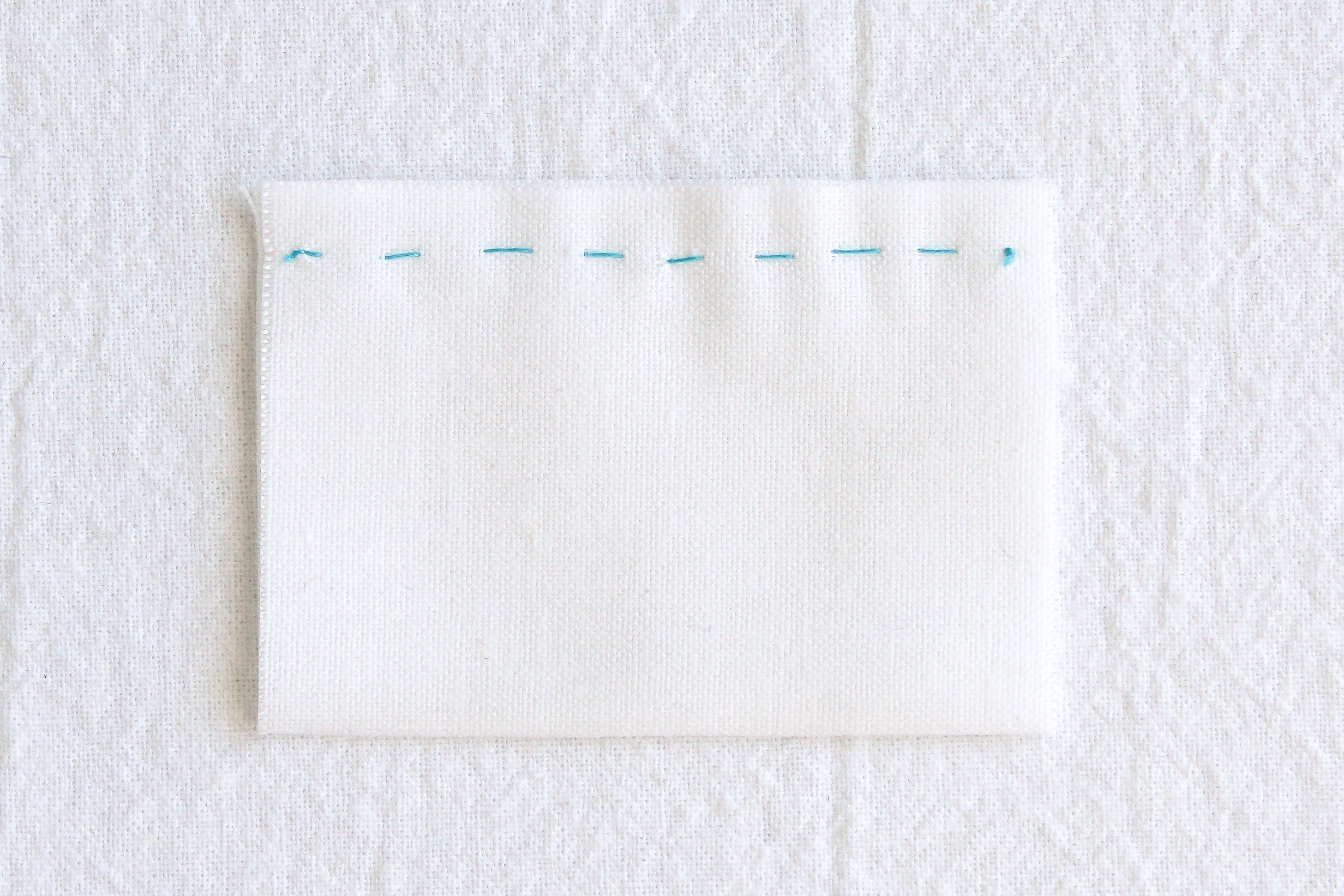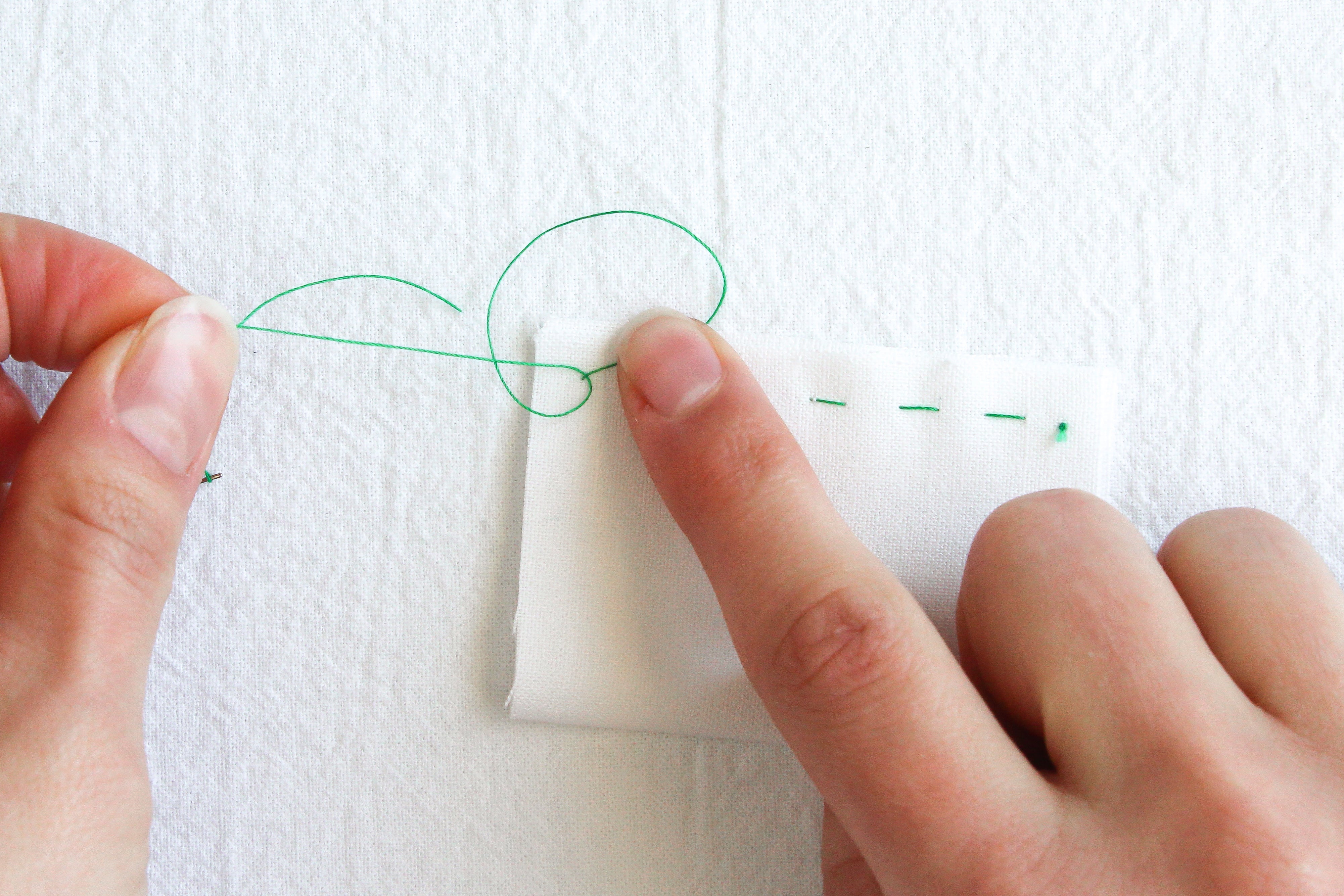 At the end of your line of stitching, make a very tiny stitch (this stitch should go through both layers of fabric!) and pull the thread through.