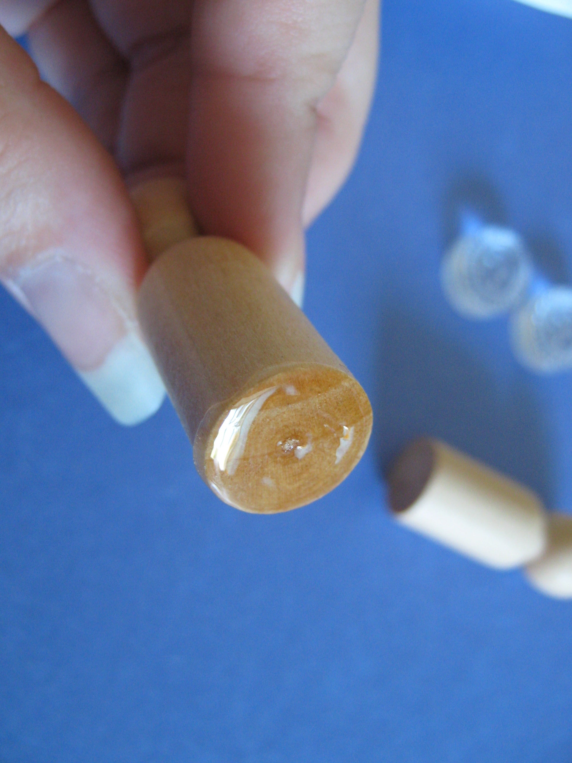 - A peg, bobbin, or any other item with a flat end to use as a handle