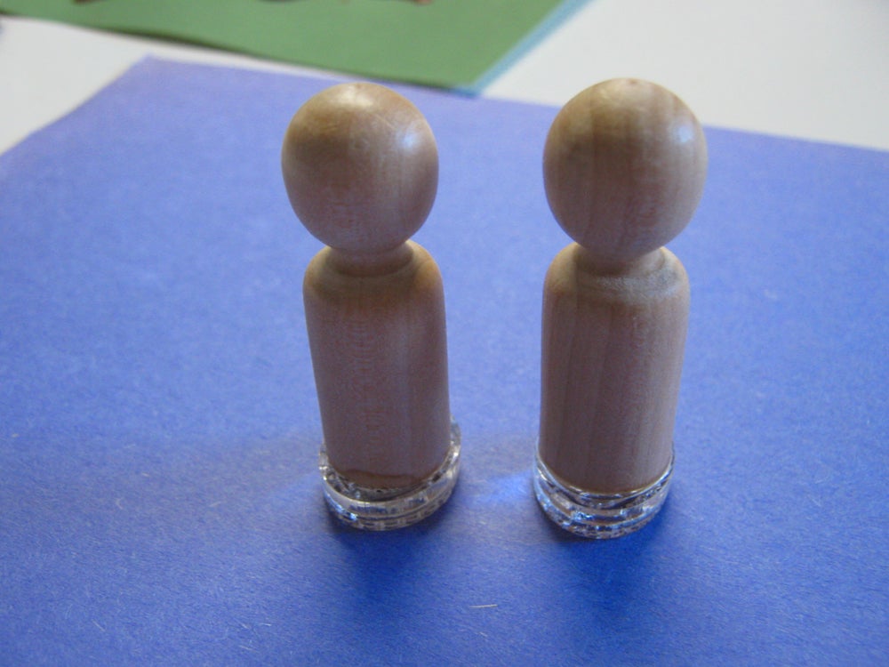 For this instructable, I'm using these wooden "peg people" game pieces. These come from Michaels, but you can also get them online for fairly cheap.