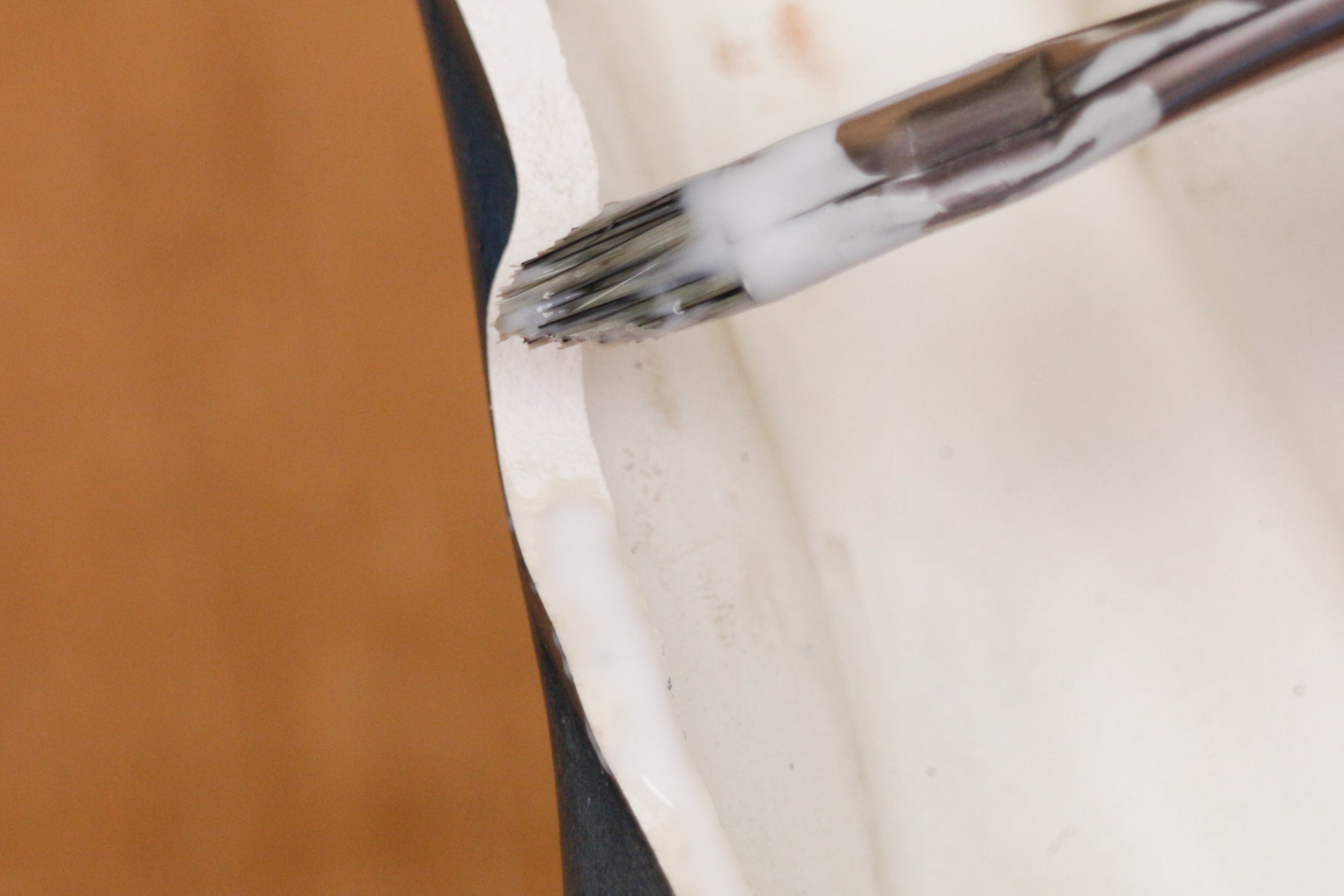 For this repair I needed to trim down a glue brush so I could accurately apply a thin bead of glue to the raw ceramic edge of the fractured pieces.